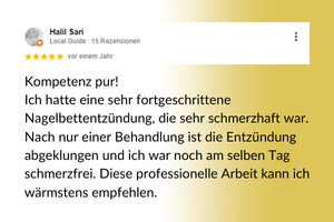 Als Expertin gehe ich individuell, respektvoll und mit großer Sorgfalt auf die Bedürfnisse meiner Kundinnen und Kunden ein, denn ich pflege ihre Füße nicht nur ästhetisch, sondern lindere Beschwerden, erhalte ihre  Mobilität und verbessere Ihr Wohlbefinden nachhaltig.